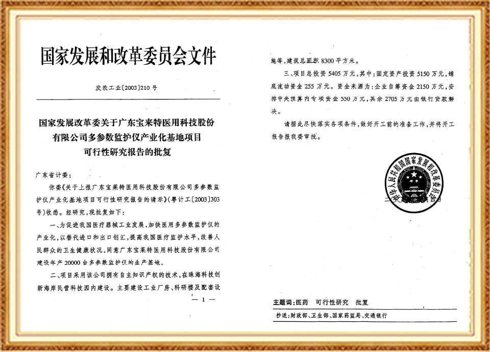 被國(guó)家發(fā)展與改革委員會(huì)授予“國(guó)家多參數(shù)監(jiān)護(hù)儀產(chǎn)業(yè)化基地”