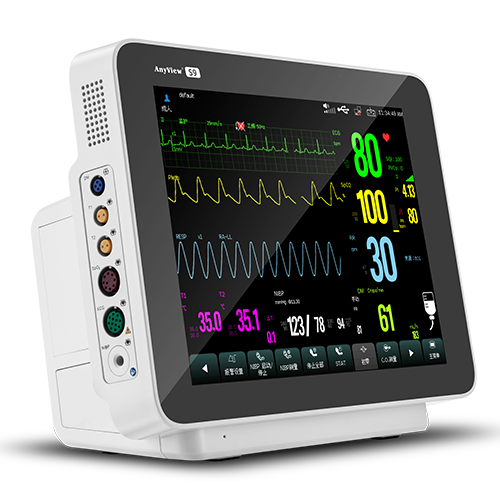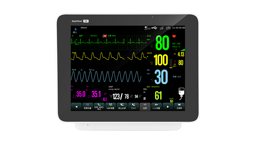 結構及組成:監護儀由主機、主控軟件及相應配套附件組成,附件包括二氧化碳測量組件、輸液滴速測量組件、心電導聯線、無創血壓袖帶、體溫傳感器和脈搏氧飽和度傳感器。